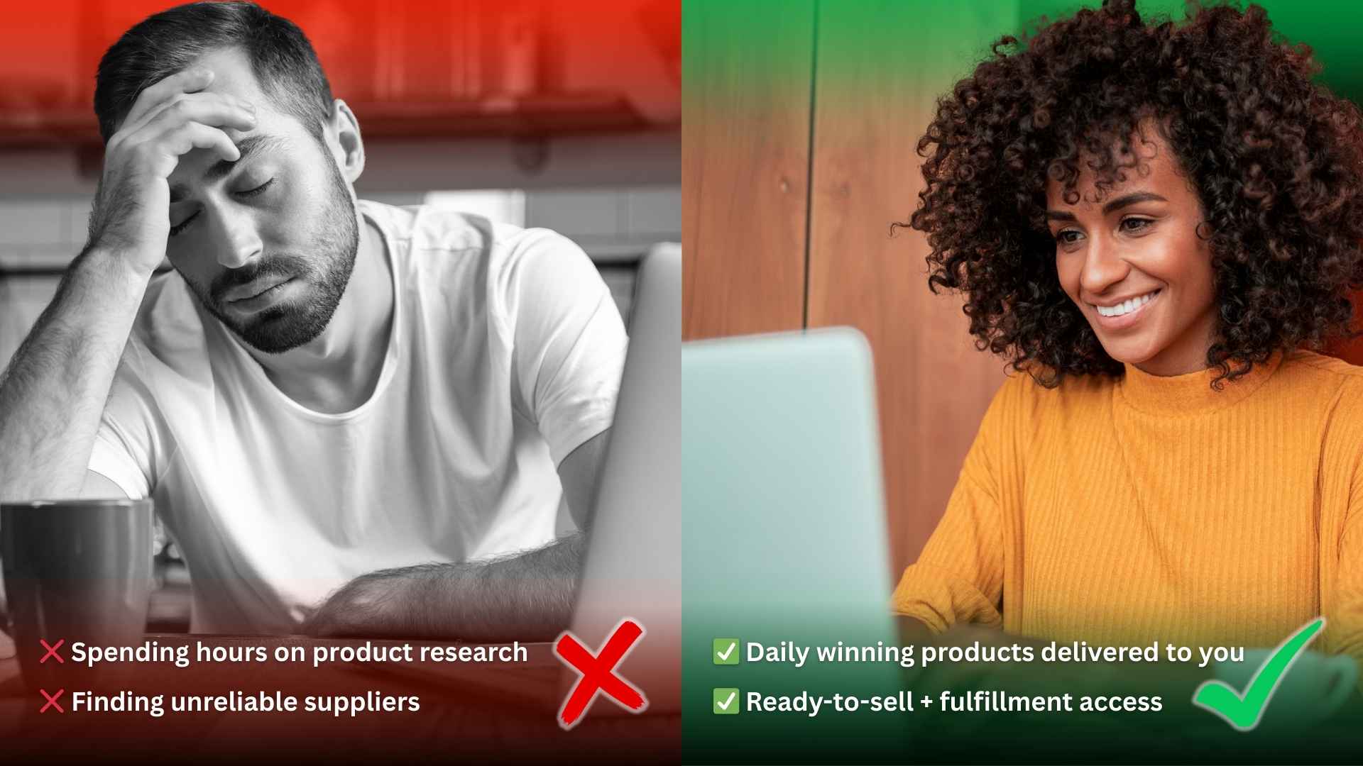 We focus only on high-demand, low-competition products, eliminating guesswork and saving you hours of research, wasted ad spend, endless scrolling, random product testing, and chasing saturated trends.